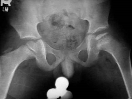 - NECROSE: de bloedtoevoer naar de heupkop is onderbroken en het gewricht wordt ontstoken en pijnlijk en stijf. Sommige delen van de heupkop zullen afsterven en de heupkop verliest zijn normale ronde vorm. Deze fase kan één jaar duren.