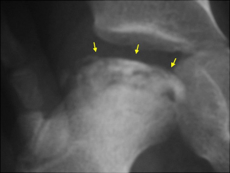 Voorbeeld van een afgeplatte femurkop na het genezingsproces